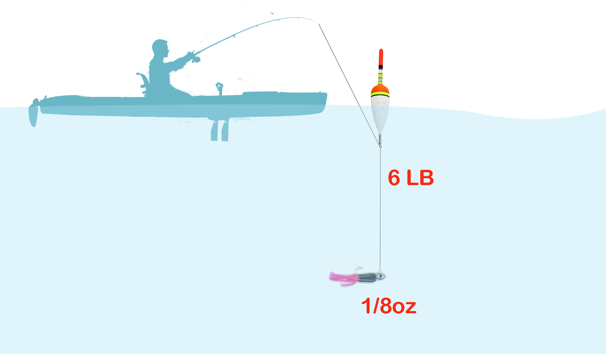 One of the most popular setups for crappie is the float setup. It’s a simple setup, 6 lb test line is connected to a float, and under the float is 1/8 jig with a crappie tube. Most people tip the lure with some maggots or worms to give it extra scent to attract more fish. But this by no mean is the best crappie setup. One of the biggest disadvantages is the float stays in one place and when trying to locate the school of crappies this is a big disadvantage.